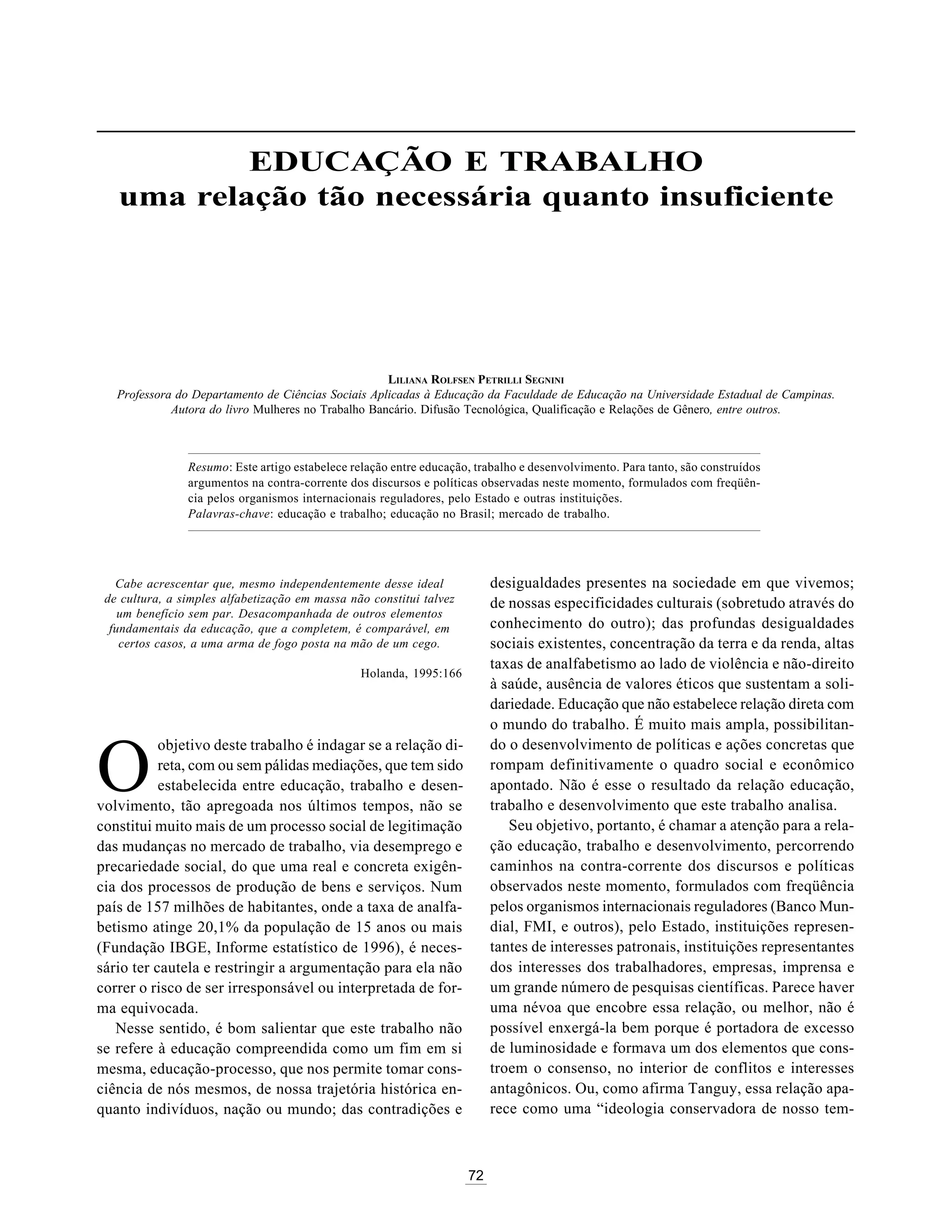 Palavras-chave: educação, trabalho, desenvolvimento, mercado de trabalho, Brasil.