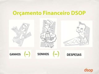 O documento apresenta um registro de despesas do mês de março de 2012 com uma compra de padaria no valor de R$25,00 paga com cartão de débito. Também discute sonhos de curto, médio e longo prazo e formas de poupar em cada horizonte temporal, incluindo regras básicas para poupar e os dez mandamentos para nunca mais se endividar. Por fim, fornece contatos de Reinaldo Domingos e links para produtos e sites sobre finanças pessoais.