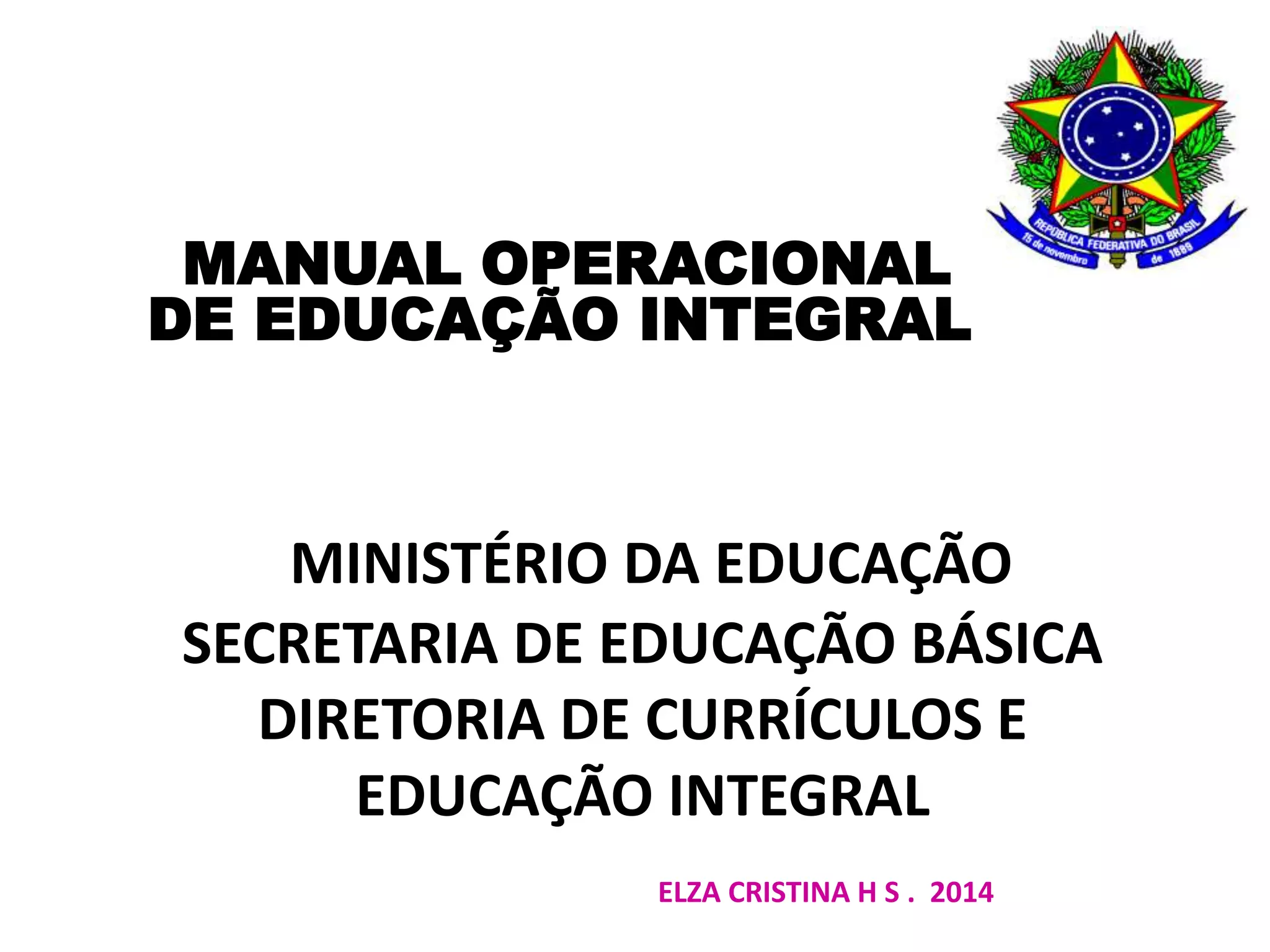 Este documento descreve as diretrizes do Programa Mais Educação no Brasil, que tem como objetivo promover a educação integral por meio da ampliação da jornada escolar e da organização curricular. O programa é uma estratégia intersetorial envolvendo vários ministérios e visa diminuir desigualdades educacionais e valorizar a cultura brasileira. Ele oferece atividades extrascurriculares em diversas áreas como comunicação, cultura, meio ambiente, esporte e saúde.