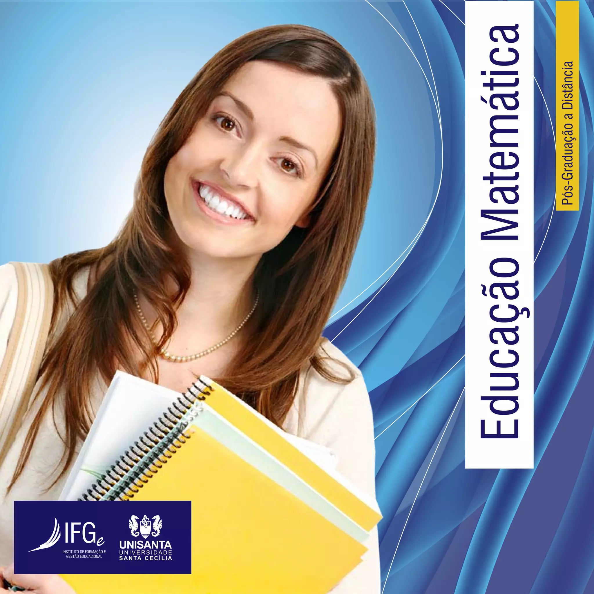 Este documento fornece informações sobre um curso de especialização a distância em educação matemática. O curso tem duração de 12 meses e carga horária de 376 horas. As disciplinas abordam tópicos como didática, avaliação, recursos midiáticos, fundamentos da educação matemática e organização do trabalho pedagógico. O curso é oferecido em parceria entre a Unisanta e o IFGe e tem como público-alvo professores de matemática e áreas afins.