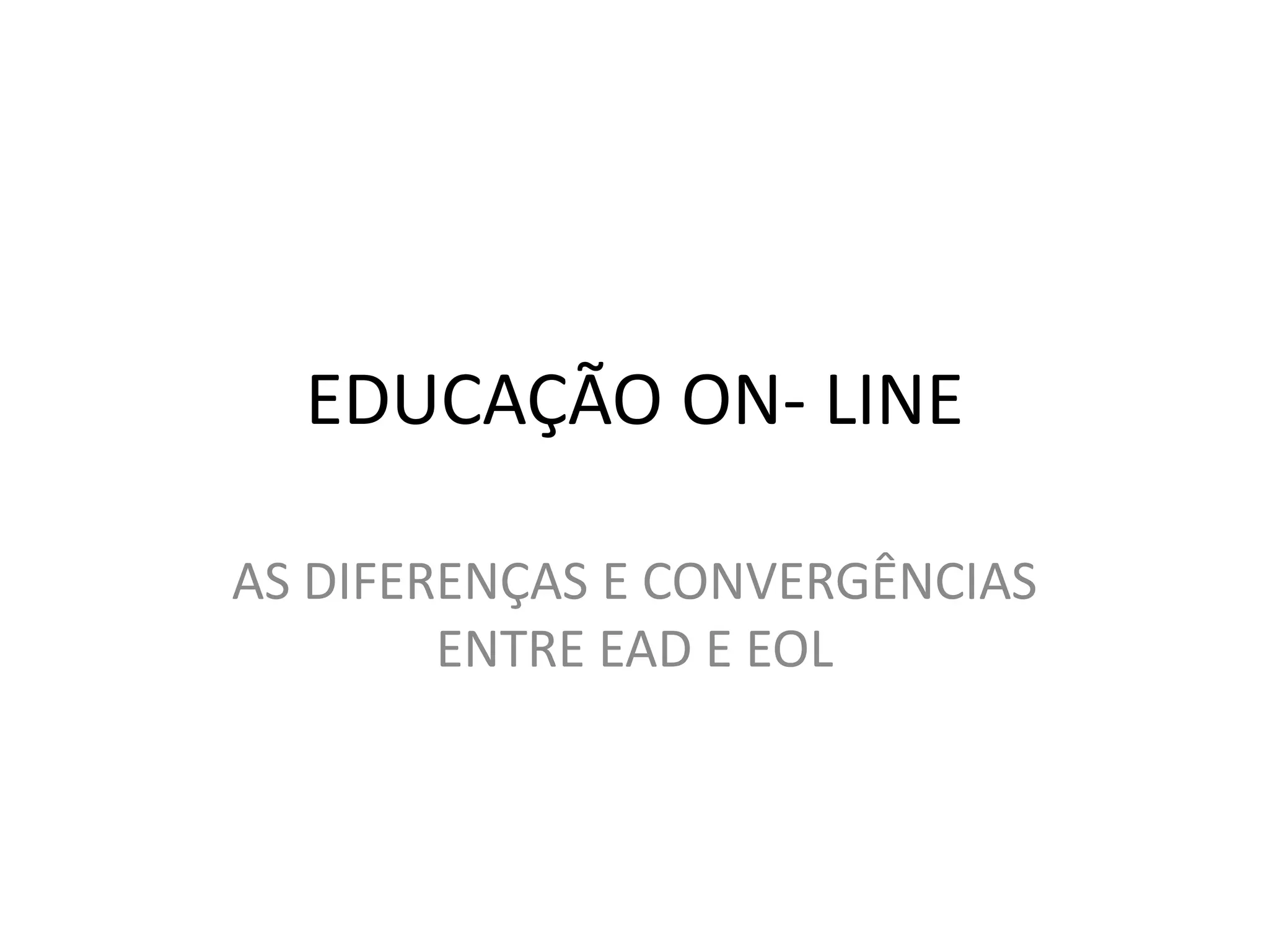 A educação a distância (EAD) enfatiza a aprendizagem autônoma do estudante, enquanto a educação on-line (EOL) se refere à educação mediada eletronicamente, principalmente pela internet, sendo mais interativa que a EAD. Ambas visam aproveitar a flexibilidade no tempo do estudante e tornar o ensino mais acessível, embora o sucesso dependa do compromisso do estudante em construir os conhecimentos de forma autônoma.
