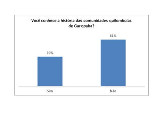 O documento discute o patrimônio material e imaterial, mencionando: 1) A comissão do IFSC que realizou pesquisa sobre o patrimônio de Garopaba; 2) Exemplos de patrimônio cultural, histórico e paisagístico em Garopaba; 3) A importância da memória e da história oral para compreender o patrimônio.