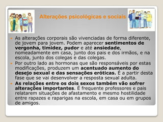 3) Discutem as transformações físicas, psicológicas e sociais da puberdade e adolescência.