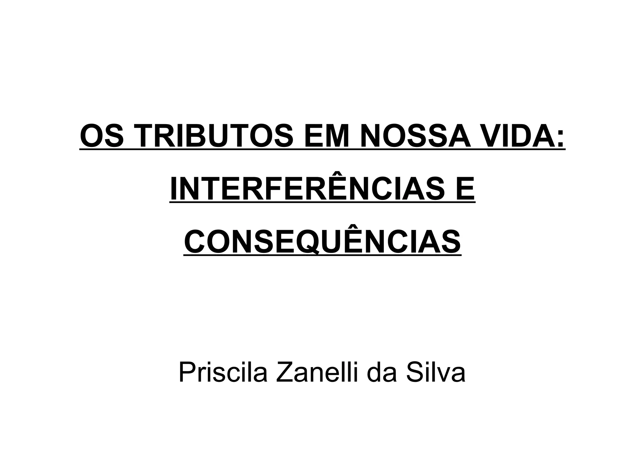 OS TRIBUTOS EMNOSSA VIDA: INTERFERÊNCIAS E CONSEQUÊNCIAS Priscila Zanelli da Silva