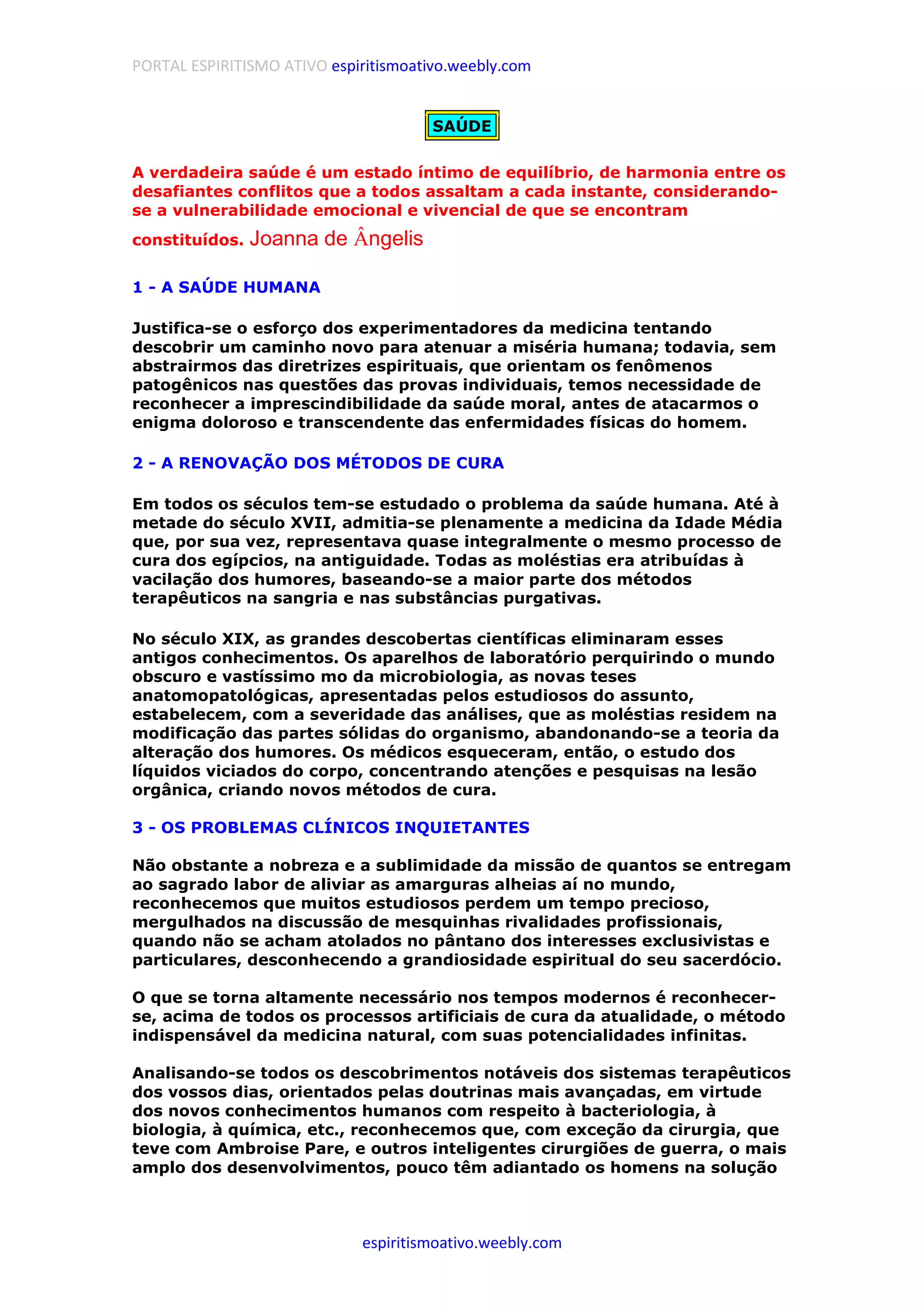 2) Defende uma medicina espiritual e natural, reconhecendo que as doenças têm origem no mundo espiritual e na harmonia com a natureza.