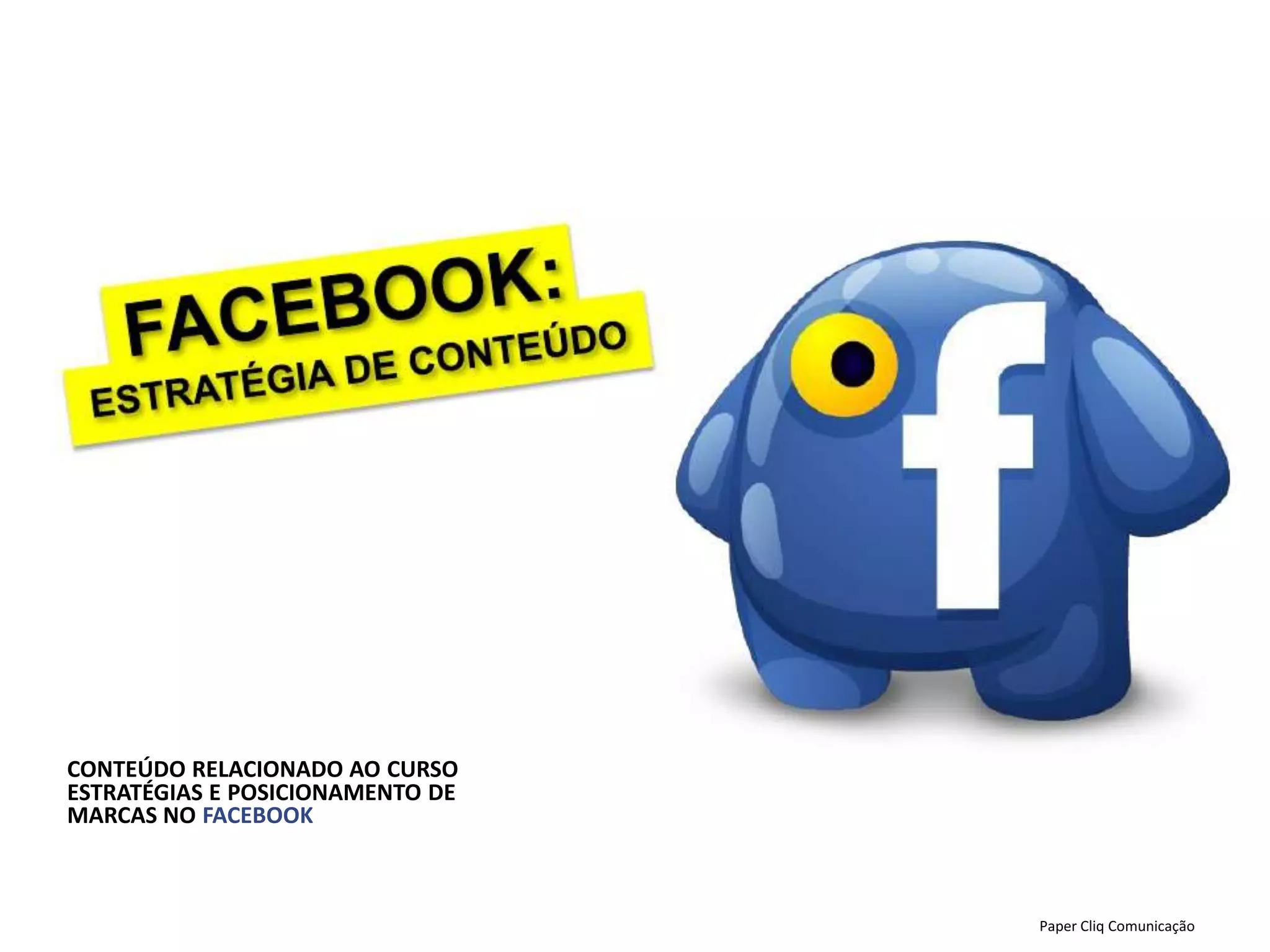 O documento discute estratégias de conteúdo no Facebook. Ele explica que não há uma abordagem única para todas as marcas, mas que é necessário entender os comportamentos dos usuários e criar conteúdo relevante e original para cada público-alvo. Também ressalta a importância de monitorar os resultados das estratégias e ajustar constantemente o conteúdo.
