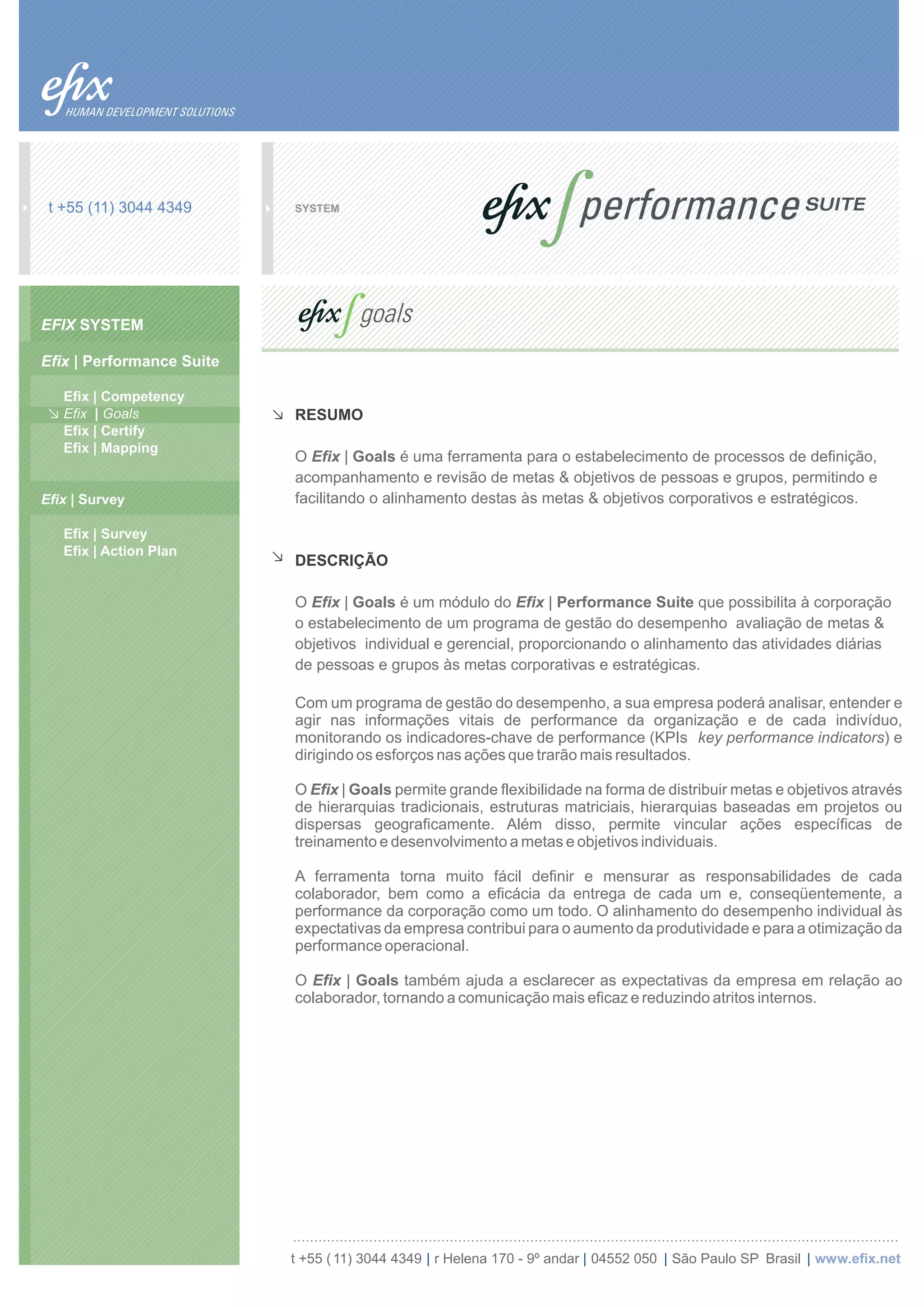 O Efix | Goals pode ser comercializado em parceria com empresas de consultoria de