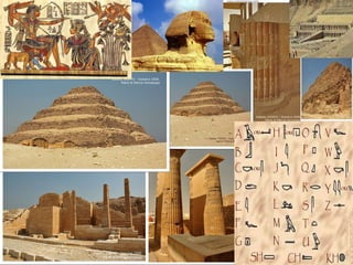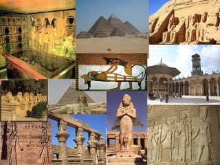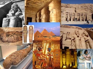 O documento descreve vários locais históricos do antigo Egito, incluindo templos em Luxor, Karnak e Dendera, além dos Vales dos Reis e Rainhas e o Templo de Abu Simbel. O texto fornece detalhes sobre a arquitetura e importância religiosa e histórica desses locais.