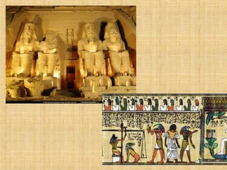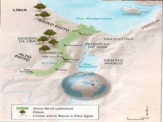 O documento descreve a importância do rio Nilo para o desenvolvimento da civilização egípcia antiga. O rio permitiu a agricultura através das enchentes anuais, possibilitou o comércio e transporte, e foi essencial para que os egípcios pudessem viver na região desértica ao longo do seu curso.