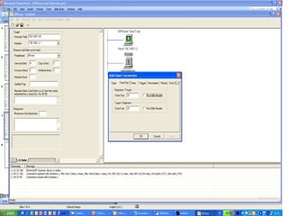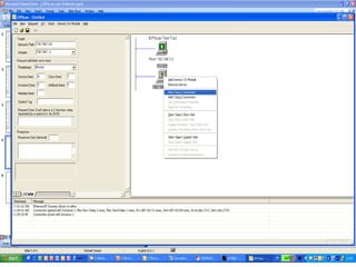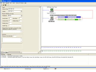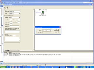 O documento discute a configuração de IP addresses para comunicação entre um drive e um PC através de uma rede Ethernet. Ele instrui o usuário a configurar manualmente os endereços IP e de sub-rede para colocá-los na mesma rede e testa a conexão usando o comando ping.