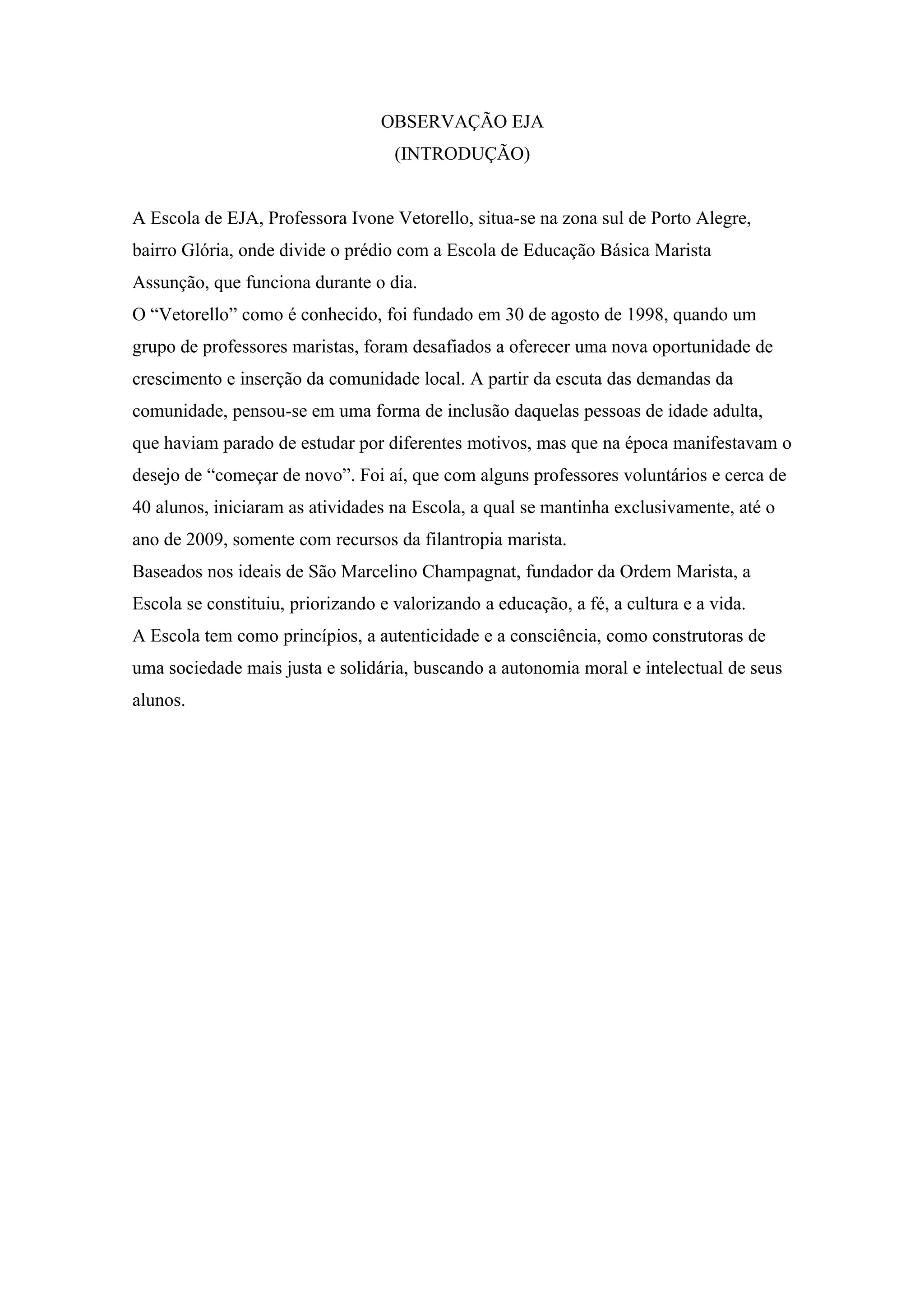 A Escola de EJA Professora Ivone Vetorello está localizada no bairro Glória em Porto Alegre e atende alunos entre 18 e 70 anos de idade com baixa renda. A escola foi fundada em 1998 por professores maristas para oferecer educação a adultos que pararam de estudar e desejam continuar aprendendo. A metodologia da escola se baseia nos princípios maristas de valorizar a educação, fé, cultura e vida dos alunos.