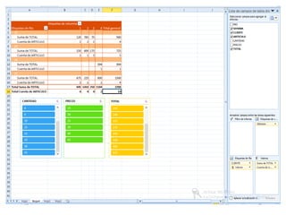 Este documento discute formatos condicionais e tabelas dinâmicas em duas partes. A primeira parte cobre formatos condicionais com cinco seções. A segunda parte apresenta dois exercícios sobre tabelas dinâmicas.