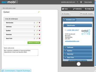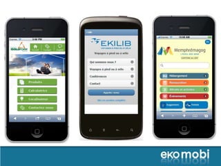 O documento promove o serviço Ekomobi, que permite criar sites para celular de forma fácil e acessível. Ele destaca as funcionalidades móveis do serviço como navegação adaptada e geolocalização, e argumenta que sites para celular são essenciais para os negócios devido ao crescimento do consumo móvel e preferência dos clientes por pesquisar empresas online via celular.