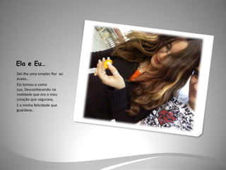 Este poema romântico descreve o amor profundo entre duas pessoas. Fala sobre como eles encontram felicidade um no outro, e como a presença um do outro dá sentido às suas vidas. Prometem nunca se separar e que o tempo que passam juntos é o mais precioso.