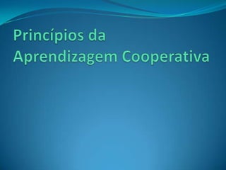 Este documento fornece orientações sobre como elaborar projetos utilizando a metodologia da Aprendizagem Cooperativa, abordando princípios como interdependência positiva, responsabilização pessoal, interação social e processamento de grupo. Inclui instruções sobre como preencher seções como introdução, justificativa, público-alvo, objetivos, atividades, produtos e indicadores.