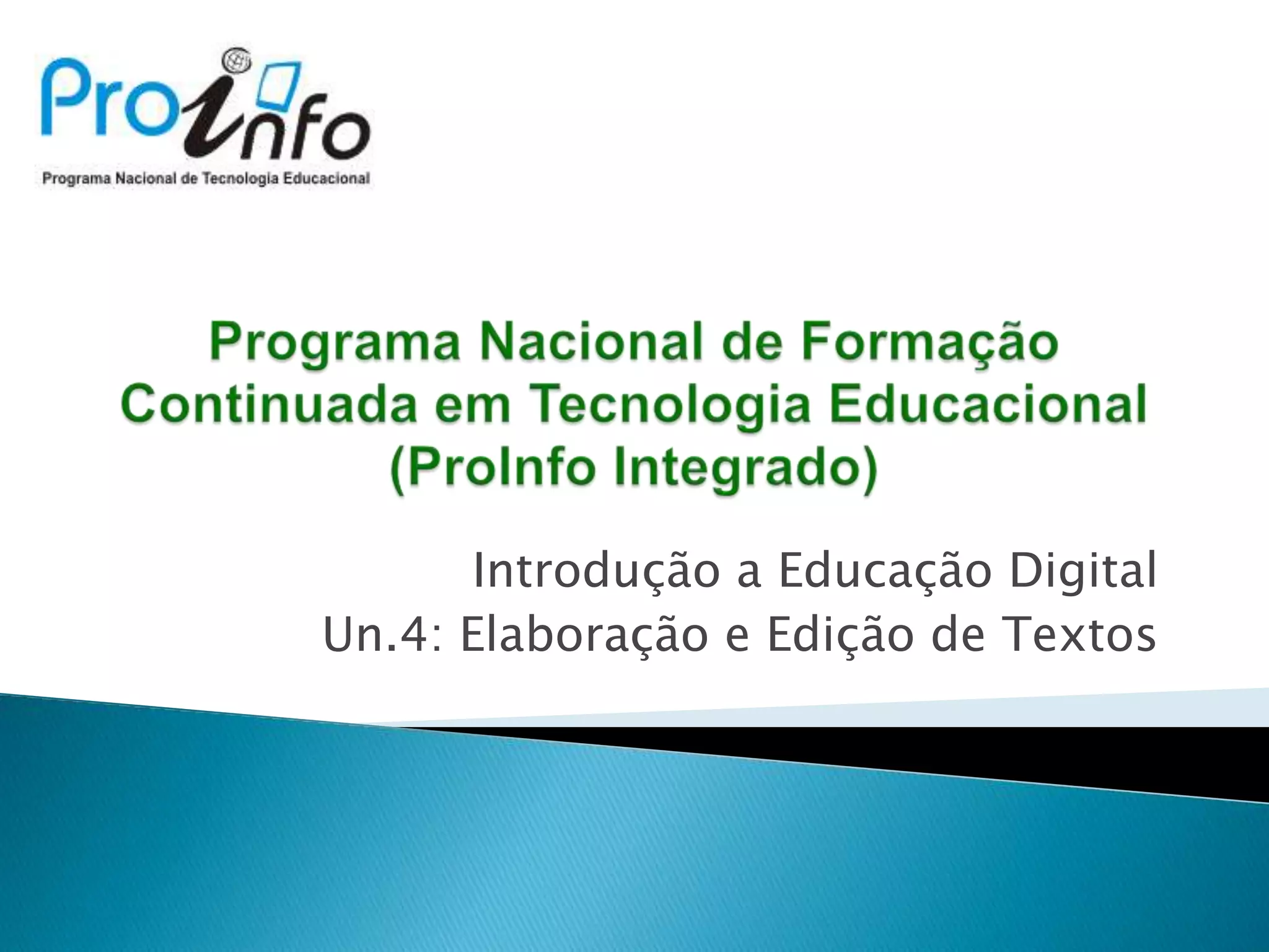 O documento discute a elaboração e edição de textos digitais, incluindo o papel dos editores de texto na democratização do acesso à produção de conteúdo e no desenvolvimento da habilidade da escrita. Ele também aborda como utilizar ferramentas como o Writer do BrOffice para editar textos, formatar, inserir figuras, salvar, exportar e gerenciar arquivos, além de cuidados com direitos autorais.