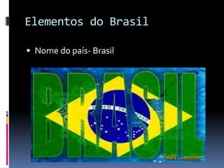 O documento apresenta diversos elementos sobre o Brasil, incluindo sua capital, Brasília, e informações geográficas como a superfície de 8.516.000 km² e número de habitantes. Menciona também aspectos culturais, como a língua, a moeda, o prato típico (picanha) e um monumento icônico (Cristo Rei). Além disso, destaca a curiosidade de que o Brasil abriga a maior comunidade japonesa fora do Japão.