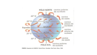 trópicos ( alta pressão) para o Equador (baixa