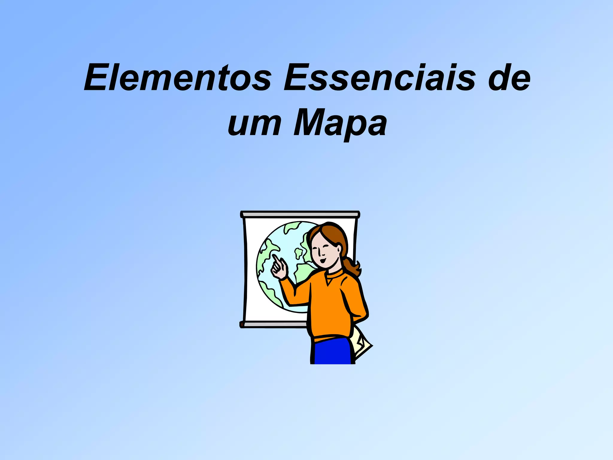 O documento lista os elementos essenciais de um mapa: título, orientação, legenda, escala e fonte. O título identifica o assunto, a orientação indica a direção norte, a legenda decodifica símbolos, a escala mostra a redução da realidade e a fonte revela a origem dos dados. A professora Marta Rosas destaca esses elementos como fundamentais para a compreensão de um mapa.