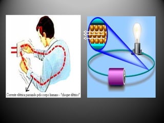 O documento descreve os primórdios do estudo da eletricidade pelo filósofo grego Tales de Mileto e como cientistas posteriores como William Gilbert e Benjamin Franklin contribuíram para o desenvolvimento da compreensão da eletricidade através de experimentos. O texto também resume os principais campos de estudo da eletricidade - eletrostática, eletrodinâmica e eletromagnetismo.