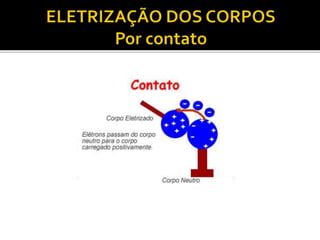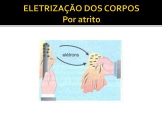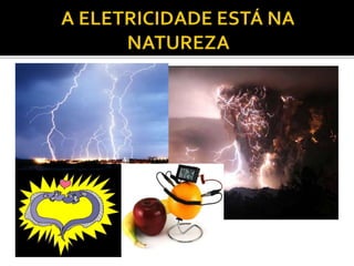 O documento discute a história da eletricidade desde a Antiguidade, quando Tales de Mileto observou que o âmbar adquiria a capacidade de atrair pequenos objetos após ser atrito. Também aborda os conceitos de eletrostática, eletrodinâmica e eletromagnetismo, além de tratar da presença da eletricidade no Universo e sua importância para a formação de moléculas complexas na Terra primitiva. Por fim, diferencia condutores e isolantes elétricos.