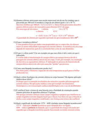 1) O documento é uma lista de exercícios sobre eletrodinâmica básica que contém 20 questões sobre conceitos como carga elétrica, corrente elétrica, condutores, isolantes, resistência e associação de lâmpadas.