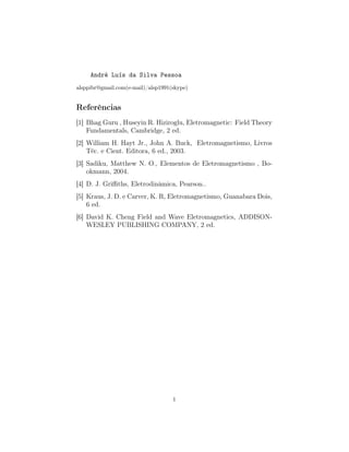 1. O documento apresenta uma síntese das equações de Maxwell, incluindo suas formas discreta e fasorial. As equações descrevem as relações entre os campos elétrico e magnético.