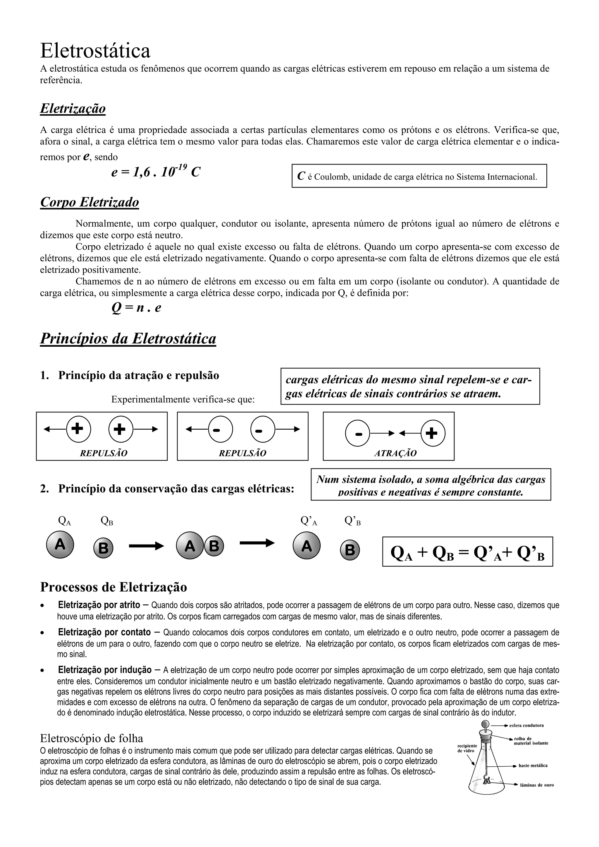 1) A eletrostática estuda os fenômenos elétricos quando as cargas estão em repouso.