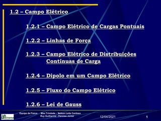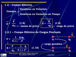 1) Campo elétrico gerado por cargas pontuais e distribuições contínuas de carga;