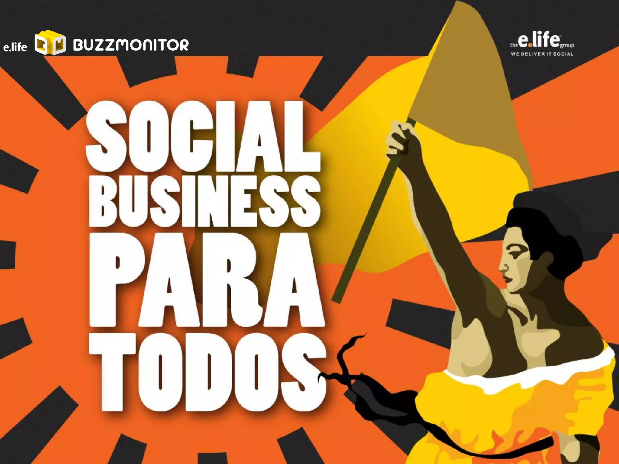 O documento apresenta a empresa E.Life e sua plataforma de business intelligence para monitoramento e análise de redes sociais, com o objetivo de compartilhar conhecimento com parceiros e ajudar médias empresas a melhorarem seu desempenho online. A plataforma fornece exemplos de como usar os dados das redes para identificar clientes-alvo, surpreender clientes, antecipar problemas, encontrar influenciadores e responder dúvidas em tempo real de forma mais barata que o telefone.