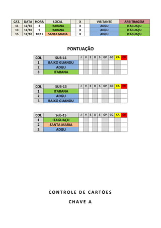 13/9 17 ITAGUAÇU 1 0 1 X 0 0 4 BAIXO GUANDU SANTA MARIA