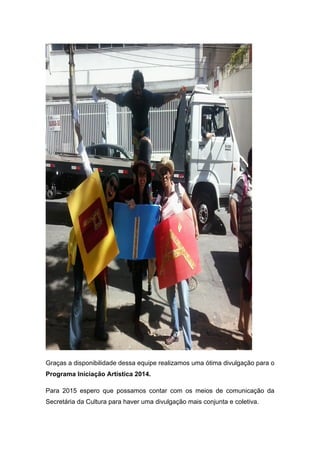 O documento descreve a experiência de um grupo de educadores artísticos e crianças no Programa de Iniciação Artística (PIÁ) na Biblioteca Monteiro Lobato. Uma criança chamada Cauê apresentou aos educadores a história de uma pedra chamada obsidiana, levando o grupo a uma jornada de descoberta sobre essa pedra. Após meses de pesquisa, as crianças transformaram pedras encontradas na biblioteca em "catadores de obsidianas". O documento reflete sobre como as crianças podem ensinar e transformar os