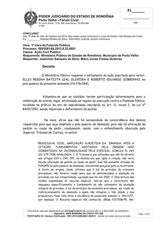 O documento trata de uma decisão judicial que: