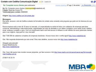 O documento abrange os fundamentos e práticas do e-mail marketing, incluindo princípios, regulamentações, elaboração de campanhas e ferramentas de envio. Destaca a importância da segmentação de público e o uso de métricas para monitorar o desempenho das campanhas. Também discute a necessidade de regulamentação para combater o spam e melhorar a eficácia do marketing por e-mail.