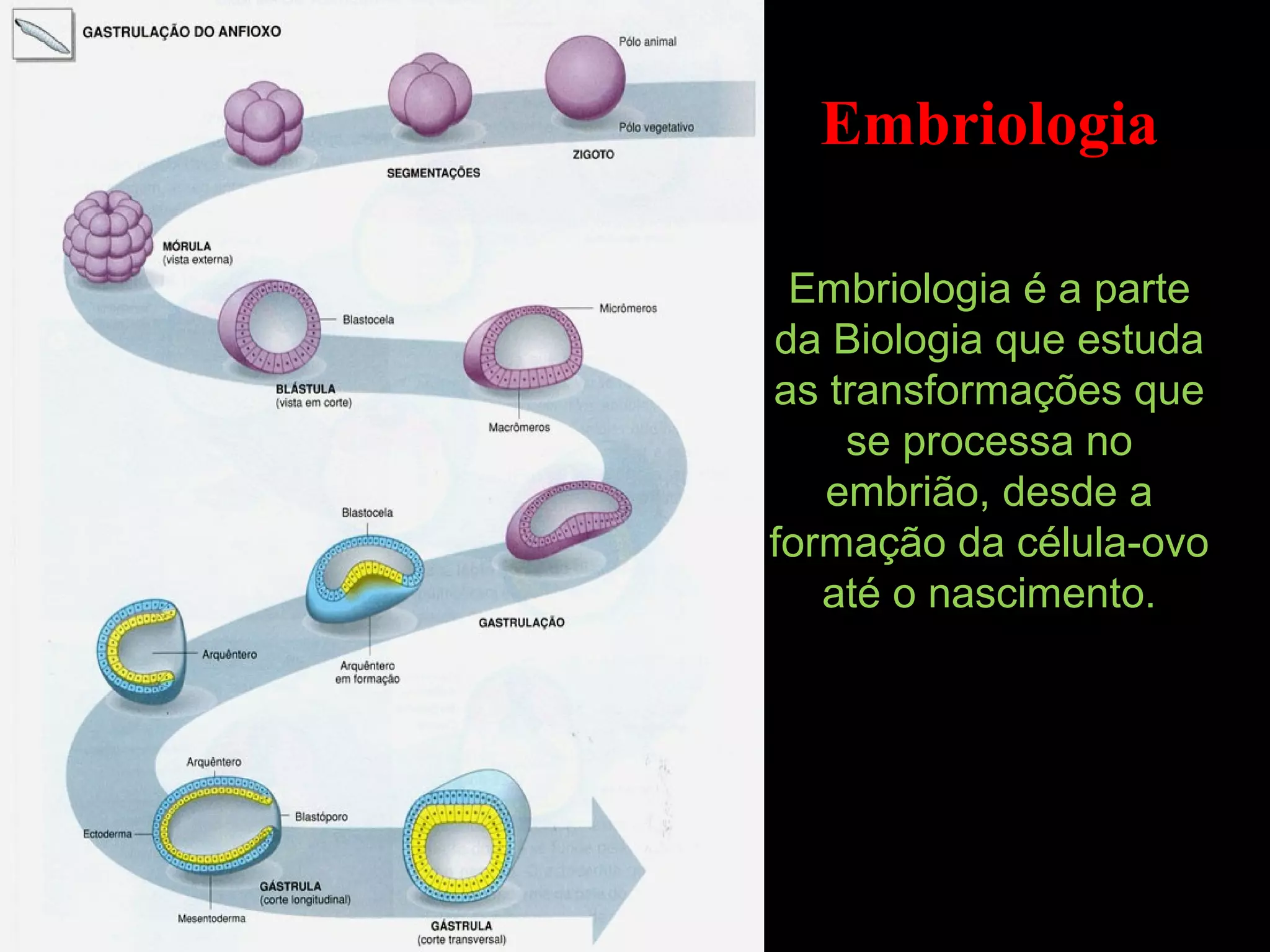 embrionário: célula-ovo, mórula, blástula, gástrula e nêurula.