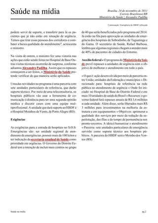 [2] Por meio do programa, o HBDF receberá R$ 3,6 milhões por ano do governo federal para ampliação e qualificação de sua unidade de emergência.