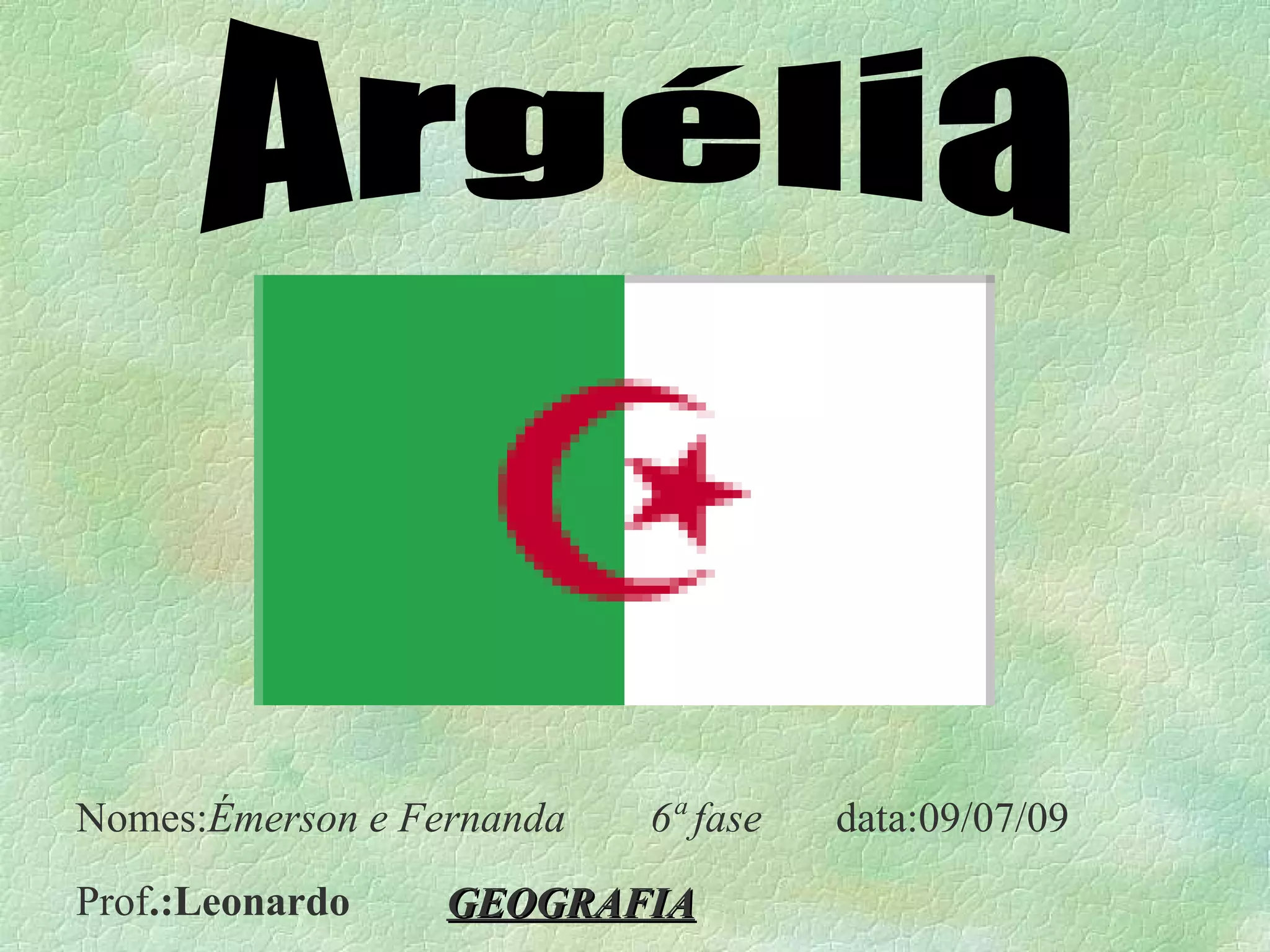 A Argélia é um país do norte da África com uma população de cerca de 33 milhões de habitantes. Foi colonizada pela França no século XIX e conquistou sua independência após uma guerra entre 1954-1962. A capital e maior cidade é Argel e a língua oficial é o árabe.