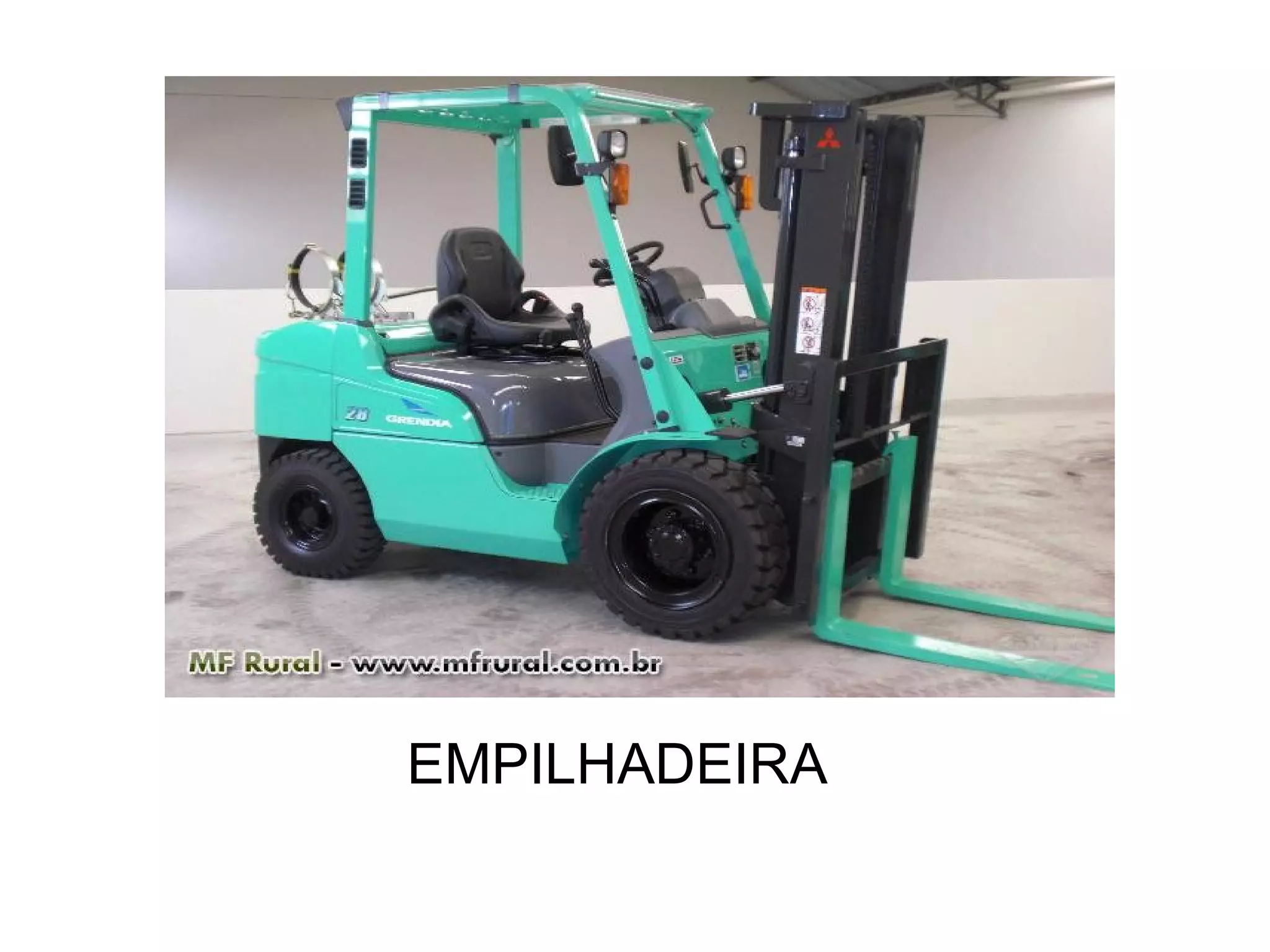 O documento descreve o histórico e os tipos de empilhadeiras, destacando sua função de levantar e carregar materiais através de garfos. Explica os aspectos a considerar na escolha, como o tipo e peso da carga, e lista os principais tipos atuais, como frontais, selecionadoras de pedidos e laterais. Também aborda a profissão de operador de empilhadeira e os procedimentos de segurança nas operações.