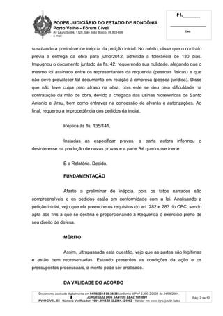 O documento trata de uma ação judicial movida por Marizete Vieira Alves contra a TSC Engenharia Ltda por atraso na entrega de um imóvel adquirido. A requerente alega que houve um acordo para antecipar a entrega, mas a requerida não cumpriu no prazo. A sentença julga procedentes os pedidos da requerente, reconhecendo a validade do acordo e condenando a requerida a indenizar os danos materiais e morais causados pelo atraso.