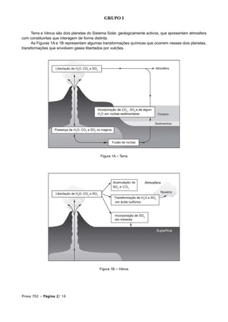 (1) O documento descreve uma prova de Biologia e Geologia com questões sobre os planetas Terra e Vénus, tectónica de placas, sismologia e sistemas respiratórios de lagartos. (2) Inclui figuras ilustrativas e experimentos sobre a capacidade de ventilação pulmonar em diferentes espécies de lagartos. (3) A prova avalia o conhecimento dos alunos em diversos tópicos das ciências da Terra e Biologia.