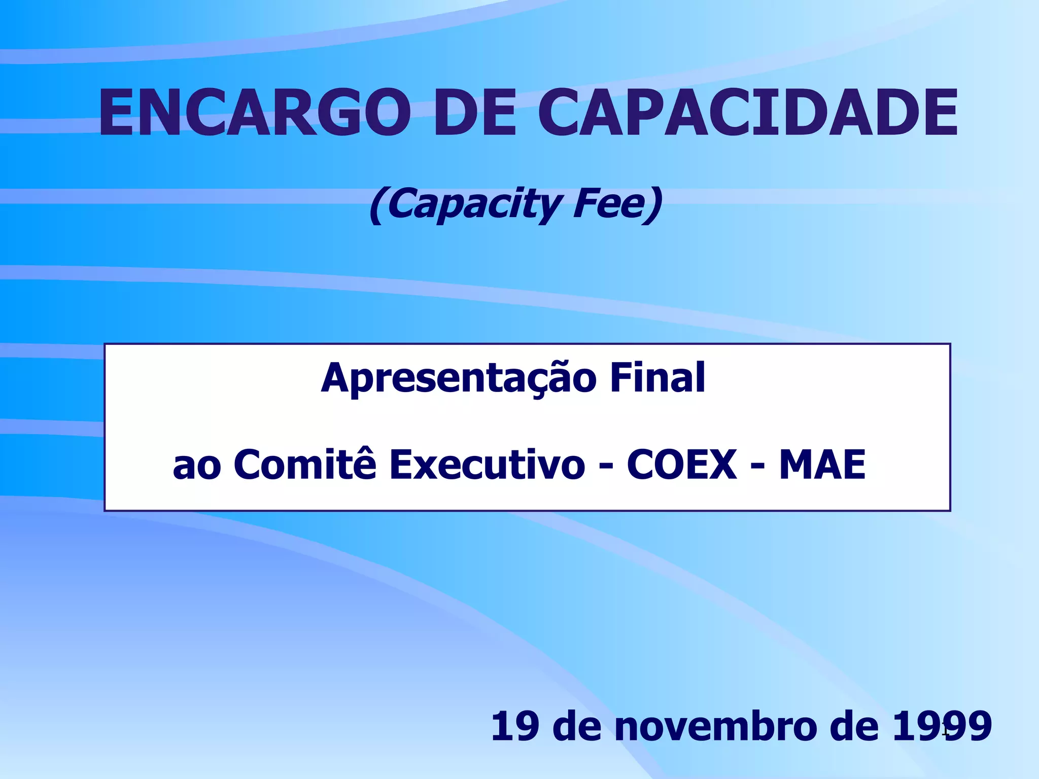 O documento resume o processo de desenvolvimento da proposta de implementação de um Encargo de Capacidade (EC) no sistema elétrico brasileiro. Discute conceitos básicos como a metodologia de cálculo do EC com base na probabilidade de perda de carga e no valor da carga perdida. Também apresenta recomendações como levar em conta a redução da capacidade de usinas hidrelétricas durante períodos de seca ao calcular o EC.