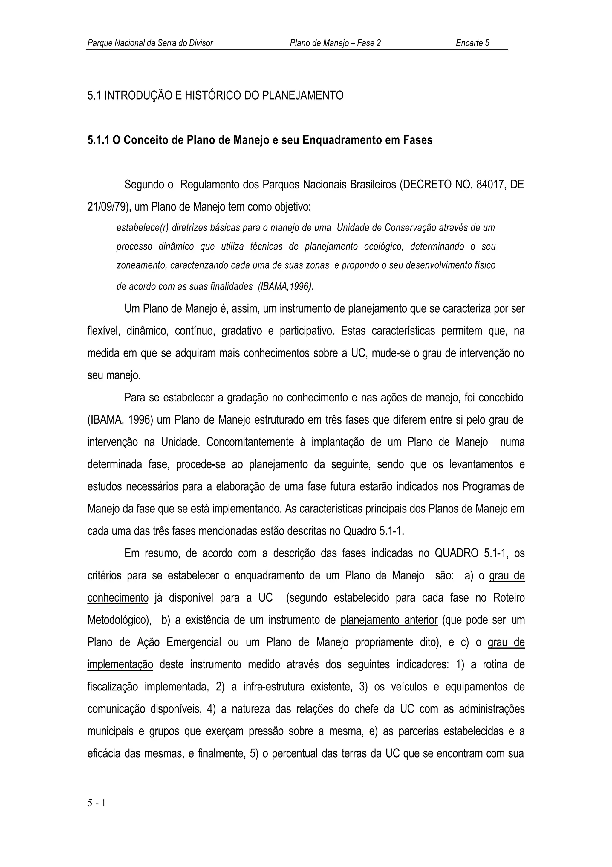 O documento descreve a metodologia utilizada para elaborar o Plano de Manejo da Fase 2 do Parque Nacional da Serra do Divisor. Foi realizada uma avaliação ecológica rápida e levantamentos sócioeconômicos com instituições parceiras. O plano foi elaborado de acordo com as diretrizes do IBAMA para enquadrar-se na Fase 2, considerando tanto o conhecimento prévio quanto a ausência de instrumentos de planejamento anteriores.