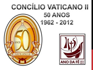 O documento descreve o logotipo do Ano da Fé, que representa um barco (a Igreja) sobre ondas, com uma cruz como mastro onde estão as velas formando o símbolo de Cristo (IHS). O fundo das velas é um sol, referindo-se também à Eucaristia.
