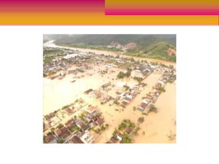 As enchentes são fenômenos naturais que ocorrem quando um leito natural recebe um volume de água superior ao que pode comportar, resultando em transbordamentos. Elas causam danos à saúde e propriedade e ocorrem com mais frequência e intensidade em áreas urbanas devido à interferência humana. Doenças como leptospirose, hepatite A e febre tifóide podem ser transmitidas por meio da água contaminada durante enchentes.