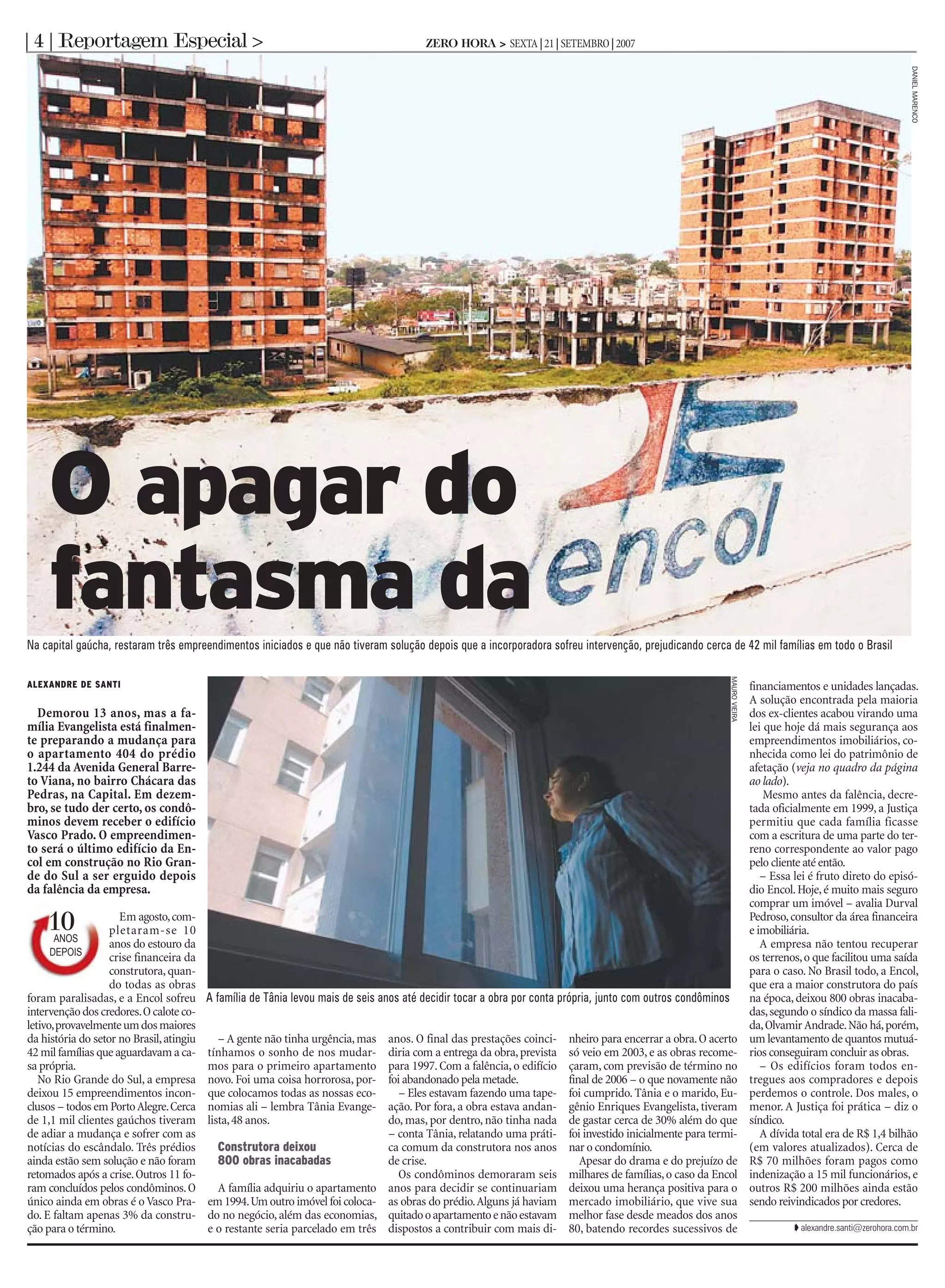A Encol, maior construtora do Brasil na época, faliu em 1999 deixando 800 obras inacabadas e 42 mil famílias sem suas casas próprias. Em Porto Alegre, a Encol deixou 15 empreendimentos inacabados, dos quais 3 ainda não foram concluídos. Após 10 anos da falência, apenas o edifício Vasco Prado ainda está em obras, faltando 3% para a conclusão. A lei do patrimônio de afetação, criada após o caso Encol, deu mais segurança jurídica aos