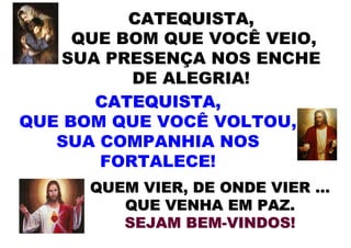 O encontro de catequistas em Dourados (MS) em 2012 enfatiza a importância do chamado divino e da vocação dos catequistas na missão evangelizadora da Igreja, destacando que todos os batizados são chamados a anunciar o evangelho. A catequese deve ser integrada à vida comunitária e aos sacramentos, e há uma necessidade urgente de renovação na abordagem catequética, que deve ser contínua e centrada em Jesus Cristo. O documento também aborda as qualidades necessárias para um catequista eficaz e a importância do envolvimento da comunidade na formação da fé.