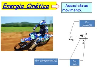 1) O documento discute vários tipos de energia, incluindo energia cinética, potencial gravitacional, potencial elástica e potencial elétrica.