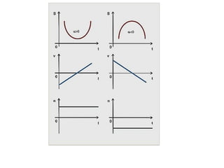 1) Velocidade é a taxa de variação da posição em relação ao tempo. Aceleração é a taxa de variação da velocidade em relação ao tempo. 2) Um guepardo pode atingir velocidades entre 115-120 km/h e correu 640m em 20s para capturar sua presa. 3) A aceleração de um automóvel F40 é de aproximadamente 10m/s2, o que significa que sua velocidade varia 10m/s a cada segundo.