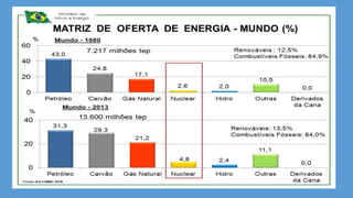 O documento discute a evolução histórica da energia e o contexto atual, desde as sociedades primitivas até a dependência das fontes fósseis e a necessidade de transição para fontes renováveis. Também aborda os impactos ambientais do uso de combustíveis fósseis e a busca por maior eficiência energética e sustentabilidade.