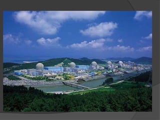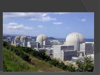 O documento discute as fontes de energia nuclear e eólica. A energia nuclear é gerada por reações nucleares que liberam energia ao quebrar núcleos atômicos. A fissão nuclear é o processo usado em usinas nucleares. A energia eólica é gerada pelo movimento do vento usando aerogeradores. Ambas são fontes renováveis, mas a nuclear tem riscos como acidentes e lixo radioativo, enquanto a eólica causa poluição sonora e visual.